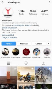 Shahnawaz Karim also has his own automotive website called Wheels Guru (www.wheelsguru.com) and is a top Instagrammer (https://www.instagram.com/wheelsguru/) with a following of 30.6k. He shares all aspects of automotive industry, comparison between vehicles and information regarding two and four wheelers on the two platforms. His Instagram handle has become one of the top destinations for travelers and bike lovers.