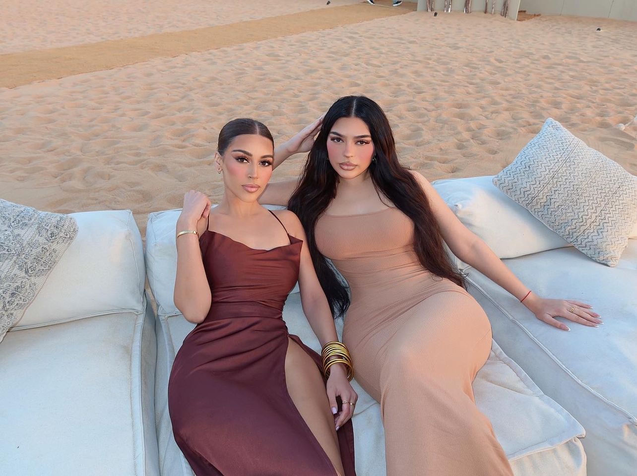 The UAE-based make-up artists and lifestyle bloggers Sonia and Fyza sisters. Around two years ago, they started their social media page to make celebrity looks for less money. Sonia and Fyza teach make-up all over the world, and Fyza works as a make-up artist for the Middle Eastern ruling families. Due to their striking resemblance to Kim Kardashian and Kylie Jenner, the pair is frequently stopped and asked to take photos.