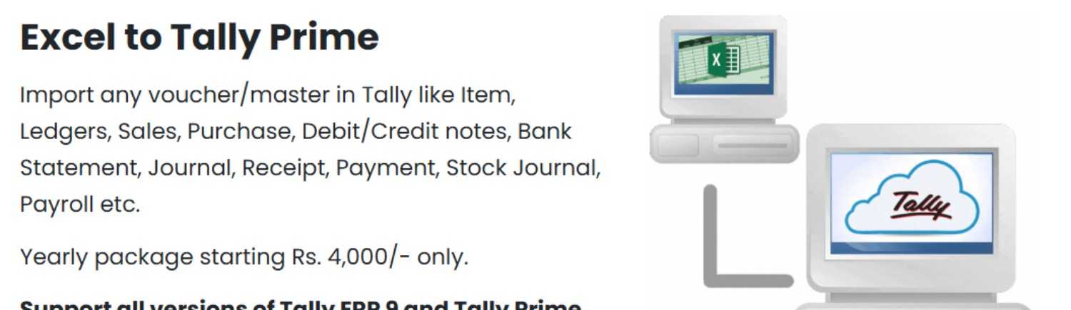 We are a trusted Tally Associate Partner, delivering reliable Tally-related services for the past 4 years. Over this period, we have built strong expertise in simplifying business accounting processes and helping organizations make the most of their Tally software through our comprehensive Excel To Tally solutions. Our core services include Excel To Tally Import functionality, E-Commerce data integration to Tally, third-party application integration, Tally TSS renewal, and bulk data processing. With our advanced Excel To Tally Software solutions, we can process thousands of entries within minutes, saving you both time and effort while ensuring complete data accuracy. We specialize in importing all types of financial and transactional data into Tally using our powerful Excel To Tally Import Tool, such as: Sales and purchase transactions Bank statements and reconciliations Receipts and payment entries Journal vouchers and adjustments Inventory-related vouchers like stock journals, material in/out, delivery notes, and more Our Excel2tally platform serves as a comprehensive bridge between your Excel data and Tally software, making data migration seamless and efficient. Whether you need a reliable Excel To Tally Converter for one-time migrations or a robust Excel To Tally Utility for regular data processing, we have the right solution for your business needs. For businesses seeking cost-effective solutions, we also provide Excel To Tally Software Free Download options that allow you to experience our basic import capabilities before upgrading to premium features. Our Excel To Tally Import Software is designed with user-friendly interfaces that require minimal technical knowledge while delivering professional-grade results. In addition to seamless data import, we also provide GSTR-2A/2B reconciliation services, ensuring complete compliance with GST regulations. Our reconciliation process is fast, accurate, and reduces the risk of errors while maintaining full integration with your existing accounting workflows. To meet the growing needs of modern businesses using the latest accounting software, we offer specialized Excel To Tally Prime integration services. Our Excel To Tally Prime Import functionality is specifically designed to leverage the enhanced features and capabilities of Tally Prime, ensuring optimal performance and compatibility. For businesses looking to try our latest Tally Prime solutions, we provide Excel To Tally Prime Import Utility Free Download options that demonstrate our advanced import capabilities and help you evaluate our services before making a commitment. To meet the growing needs of modern businesses, we also offer Cloud Tally solutions, allowing you to access your Tally software securely from anywhere, anytime. This enables better collaboration, improved data security, and enhanced productivity for businesses of all sizes while maintaining seamless integration with our Excel import tools. Whether you are a small business looking for simple data migration or a large enterprise handling complex bulk entries, our customized solutions are designed to make your accounting tasks faster, easier, and more reliable. Our comprehensive suite of Excel to Tally tools ensures that regardless of your data volume or complexity, we have the right solution to streamline your accounting processes. With a strong commitment to quality and customer satisfaction, we continue to support businesses in managing their financial operations more efficiently through our innovative Excel to Tally solutions, comprehensive software tools, and dedicated customer support services.